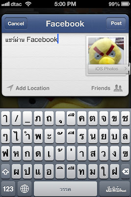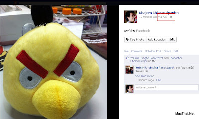 โพสต์เสร็จก็จะขึ้นมาบน Wall ใน Facebook ตามรูป สังเกตุมีคำว่า “via iOS”