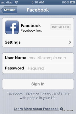 ขึ้นชื่อว่าแอปเปิล ย่อมต้องทำระบบที่แสนจะซับซ้อนนี้ ให้ใช้ง่ายที่สุดเท่าที่จะทำได้อยู่แล้ว เราลองมาดูกันดีกว่าว่า ชีวิตการใช้ Facebook บน iOS 6 นั้น จะแจ่มแค่ไหน
