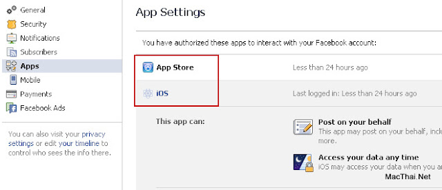 สำหรับ Setting ในฝั่ง Facebook จะอยู่ใน App